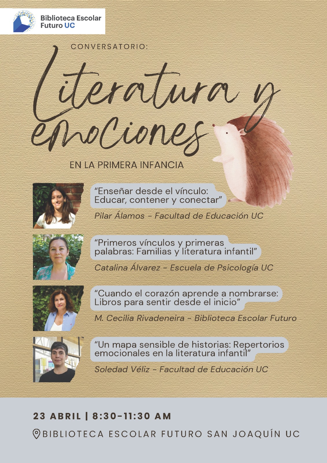 En el marco del Día del Libro, esta actividad propone un espacio de reflexión y diálogo en torno al rol de la literatura en el desarrollo emocional de niños y niñas. A través de distintos enfoques, se abordará cómo los relatos, cuentos y experiencias lectoras pueden acompañar los procesos afectivos desde los primeros años.